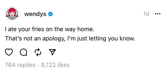 (Why did this Thread work for Wendy’s? The answer: it fits their brand tone and strategy and thus it is easily recognizable for long-term fans.)